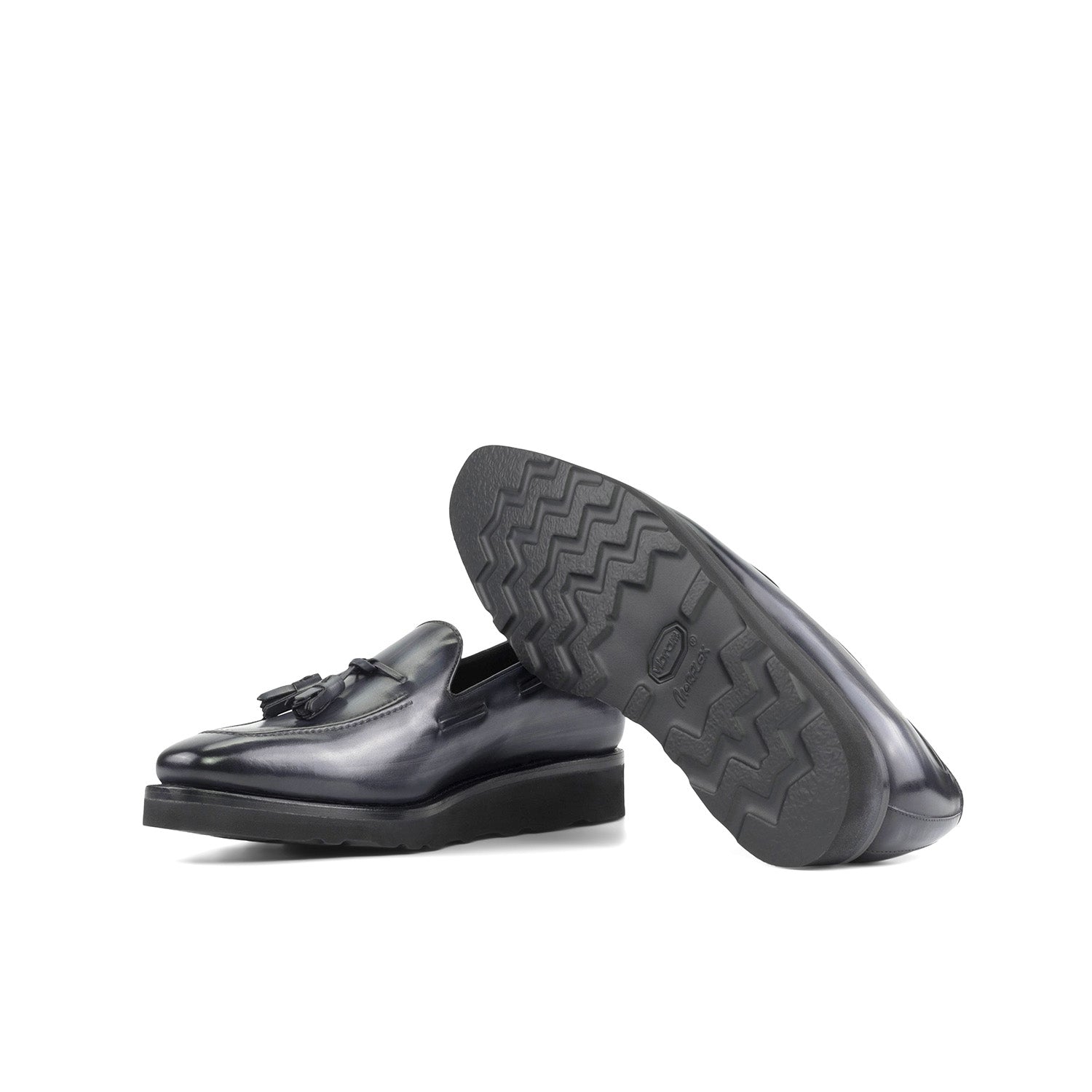 - Beaumont Bespoke Men's Shoes Gray Patina Leather Tassels Loafers (MFW1021)